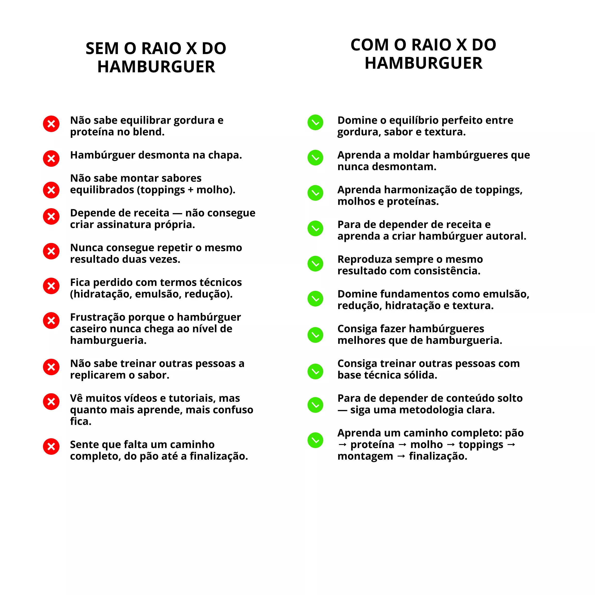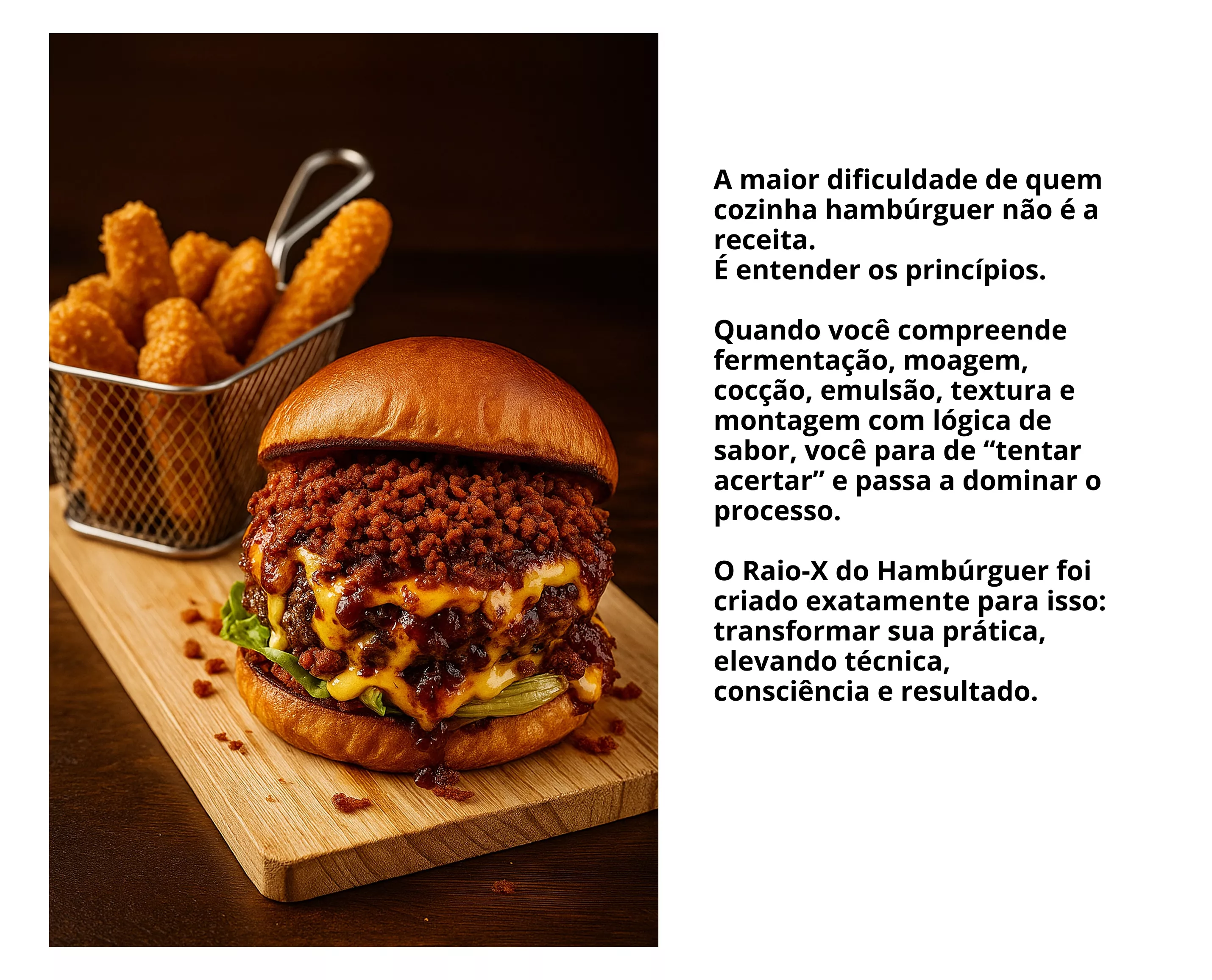 "Eu era aquele cara que tentava fazer hambúrguer em casa e sempre saía algo sem graça. Depois do 'Raio-X do Hambúrguer', eu entendi a ciência por trás de cada etapa. Meus amigos agora me chamam de 'o mestre do hambúrguer' e não param de pedir pra eu cozinhar. É outra relação com a cozinha"